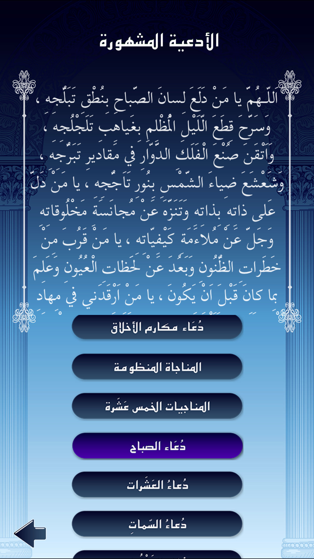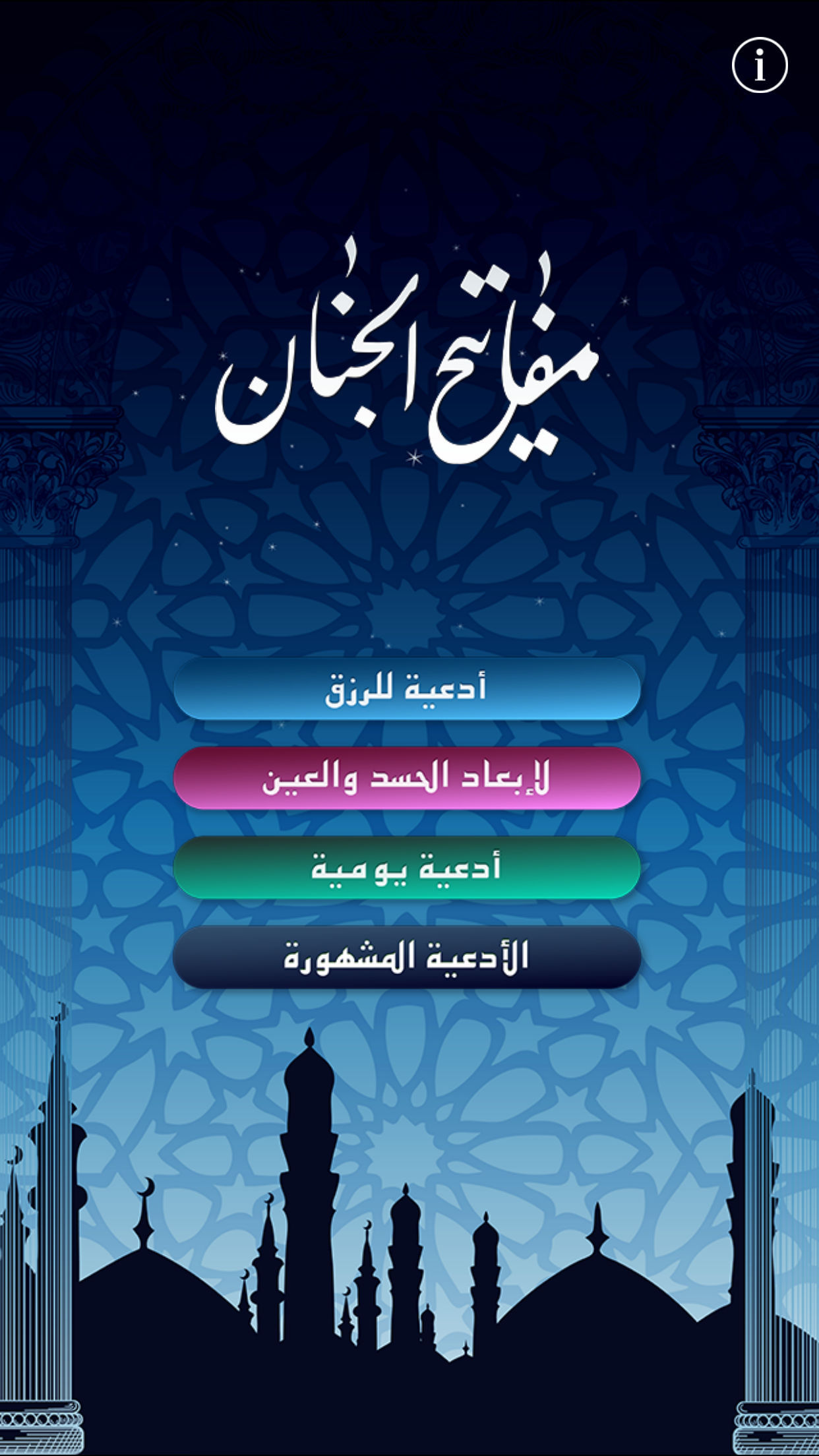 يوجد ثلاثون دعاء في كل قسم، دعاء لكل يوم, أدعية لشهر رمضان, ادعية لإبعاد الحسد والعين, الادعية المشهورة وأدعية يونمية لكافة المناسبات.. وهي لكل مؤمن ومؤمنة.